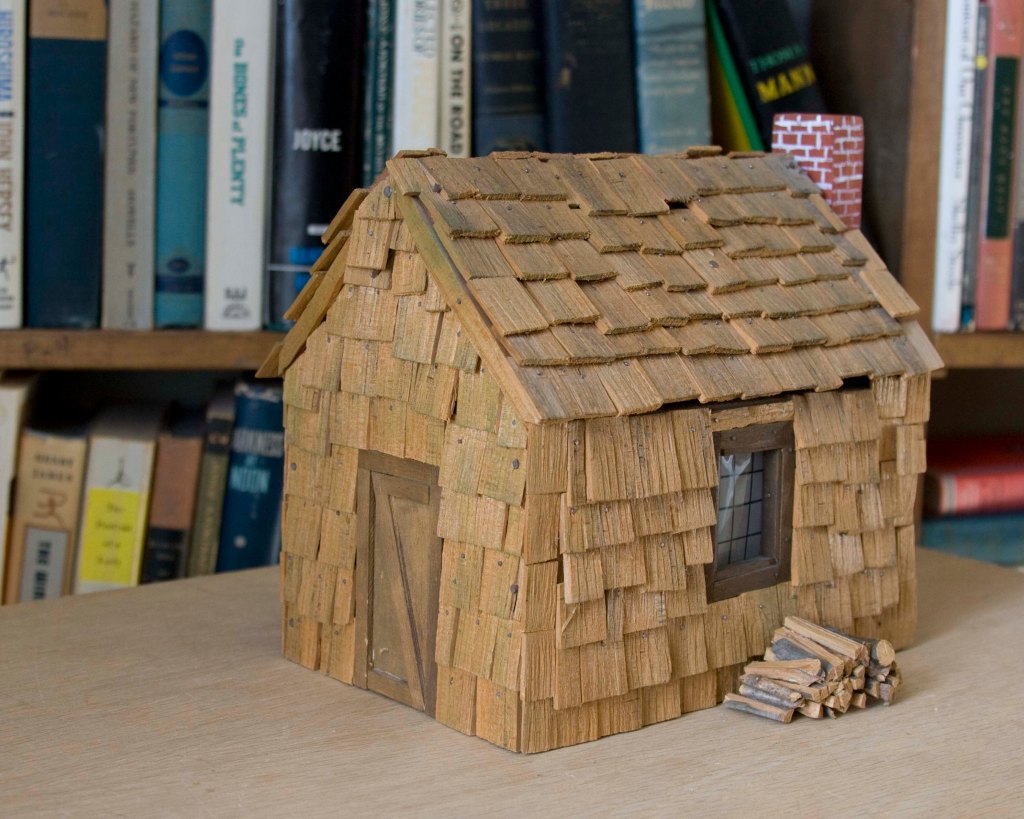 I made this piece my sophomore year of high school, when we read Walden. When I brought it to class, the girl who sat next to me leaned over and said, “Did you make that?” I said I did. “It’s really good.” She was really cute, and she liked my little house. That means it’s probably still my most successful piece. I present it all these years later with affection.